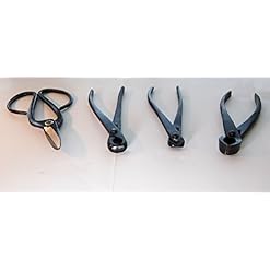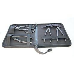 U-nitt 4-pc Bonsai Tool Set Carbon Steel: concave Cutter; Wire Cutter; knob Cutter; Ashinaga Shears: in a Leather Case