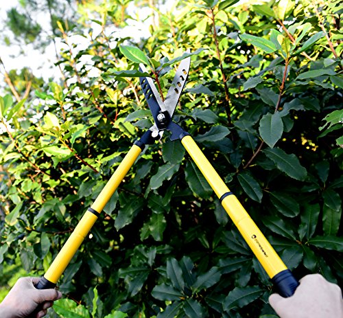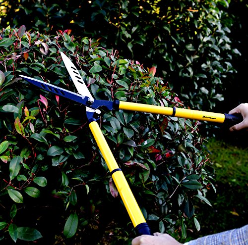 TELESCOPING 22” HEDGE CLIPPERS – Sharp, Easy to Use Carbon Steel Garden Shears Absorb Shock, Resist Corrosion – Hardened Manual Telescoping Hedge Trimmer for Professional Gardening and Landscaping