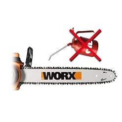 The 18-Inch 4.0 HP 15.0 Amp chainsaw is a cut above the rest. The WORX exclusive, patented tool-free chain replacement and auto-tensioning system eliminates the headaches faced with most other chain saws. You don’t need to be a lumberjack to operate a chainsaw. The auto-tension system includes a single, oversized knob that secures the bar and chain and maintains proper tension during operation-automatically. The WORX auto-tensioning system also works to extend bar and chain life by eliminating any chance of over-tightening. What’s more, all-metal dogs at the base of the long, 18-inch bar help add stability during cutting, while an easy-to-lubricate sprocket on the bar nose helps preserve the life of the tool. Powerful enough for your toughest jobs, the WORX electric chain saws produce anywhere from 4.0 peak horsepower. The WORX 18-Inch chainsaw also offers gas-free, hassle-free operation. Different from gas-powered chain saws, our electric chain saw doesn’t require you to mix oil and gas or deal with difficult startups. And unlike the competition, the WORX features an automatic oiler that provides constant lubrication to both the bar and chain. Each WORX chain saw is equipped with a 6.75-ounce oil reservoir with an oil level indicator. Designed for Safety and Comfort. The WORX chain saws include a built-in safety chain brake that stops the chain in seconds when improper contact is made, protecting you in the event of kickback. Additionally, a rubber over-molded rear handle and ergonomic full-wrap front handle provide optimum operator control and comfort. POINTS TO REMEMBER: 1) Remove oil cap and immediately restore it after operation. This relieves any pressure during the oiling process. 2) Allow the saw to cool down before storing. 3) Remove oil from saw before storage. 4) Wipe down the saw sprocket area 5) Use only enough oil for the task at hand